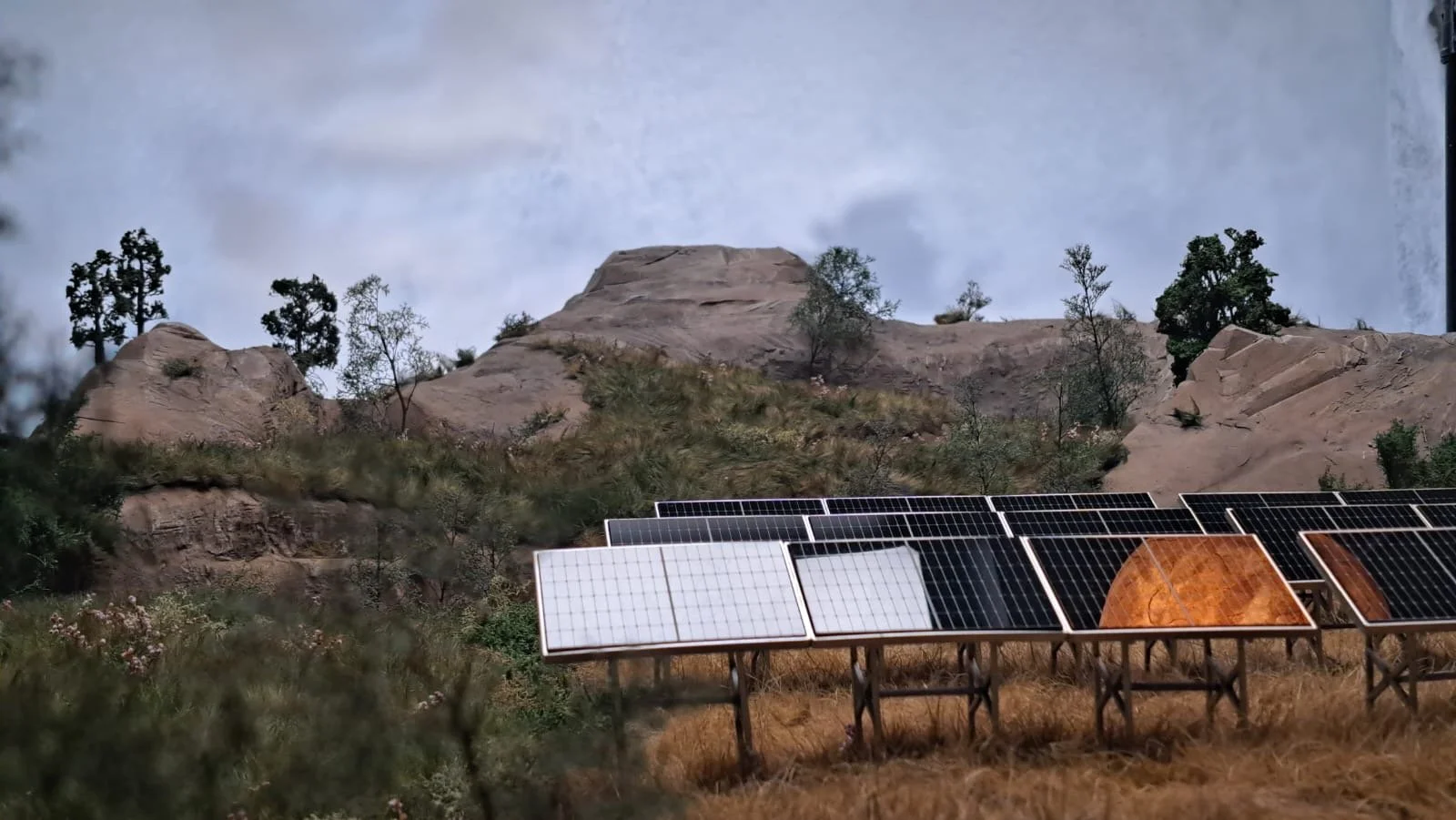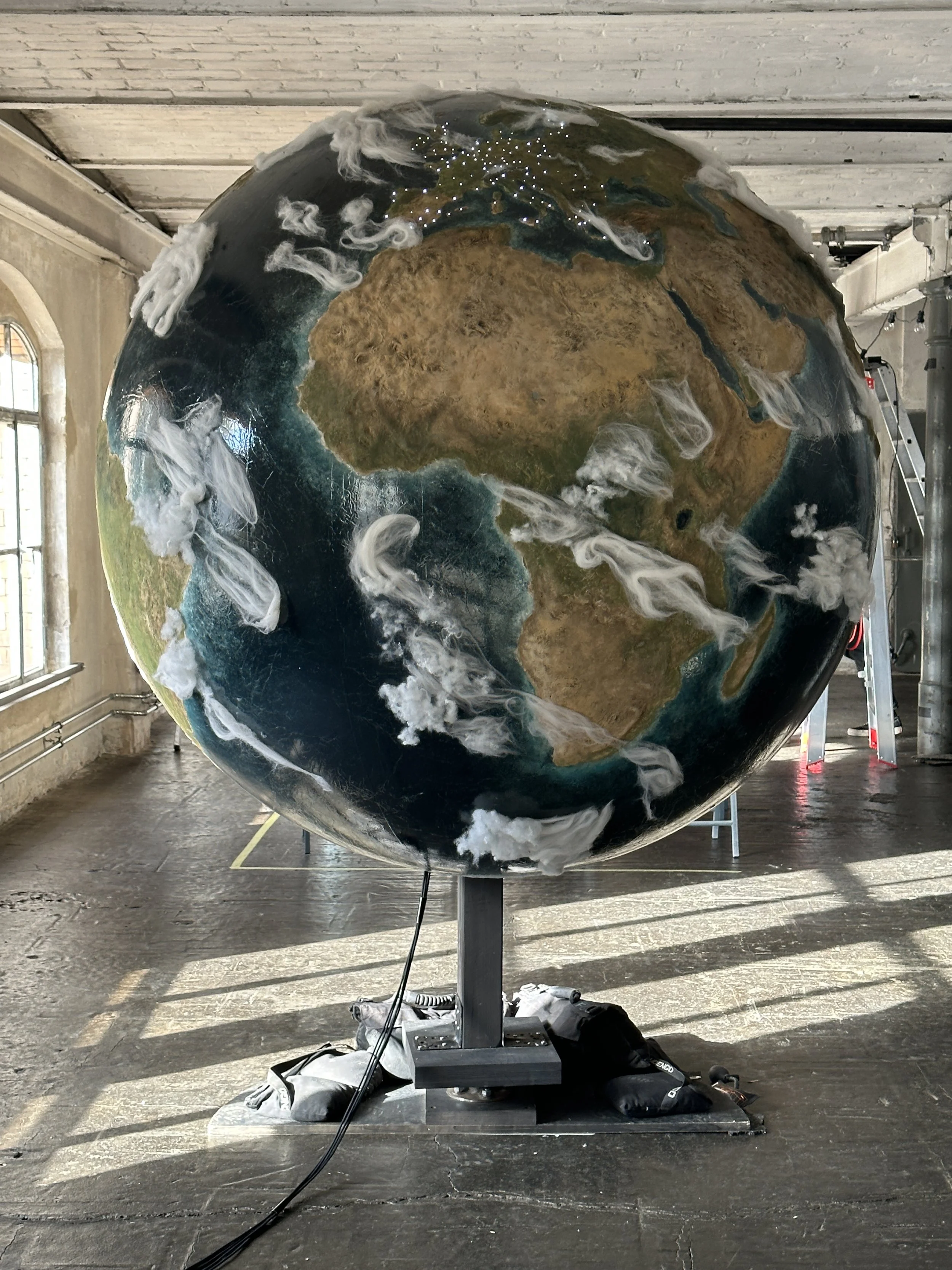 Concept, Design and construction of a rotatable globe (1,6m diameter) and a dreamy miniature solar farm (1,8m x 2,00m)